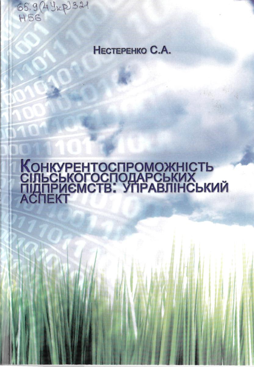 Конкурентоспроможність сільськогосподарських підприємств: управлінський аспект [Текст] / С. А. Нестеренко. – К. : [б. и.], 2012. – 483 с. – 1 прим.